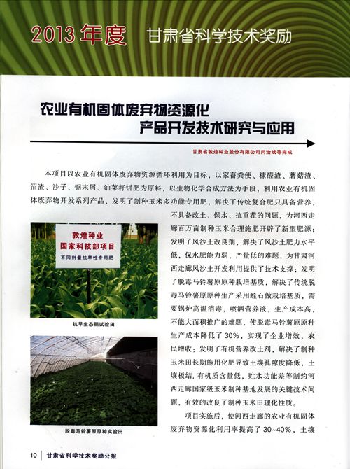 “農(nóng)業(yè)有機(jī)固體廢棄物資源化產(chǎn)品開發(fā)技術(shù)研究與應(yīng)用”喜獲甘肅省技術(shù)發(fā)明一等獎