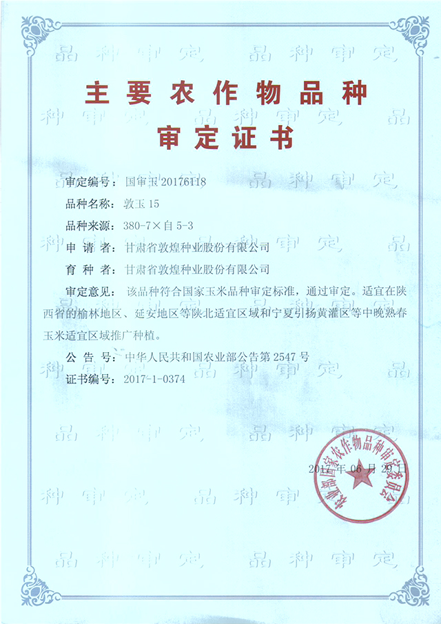 當(dāng)前位置:敦煌種業(yè)|DHSEED / 研發(fā)創(chuàng)新 / 科研成果 / 品種證書
